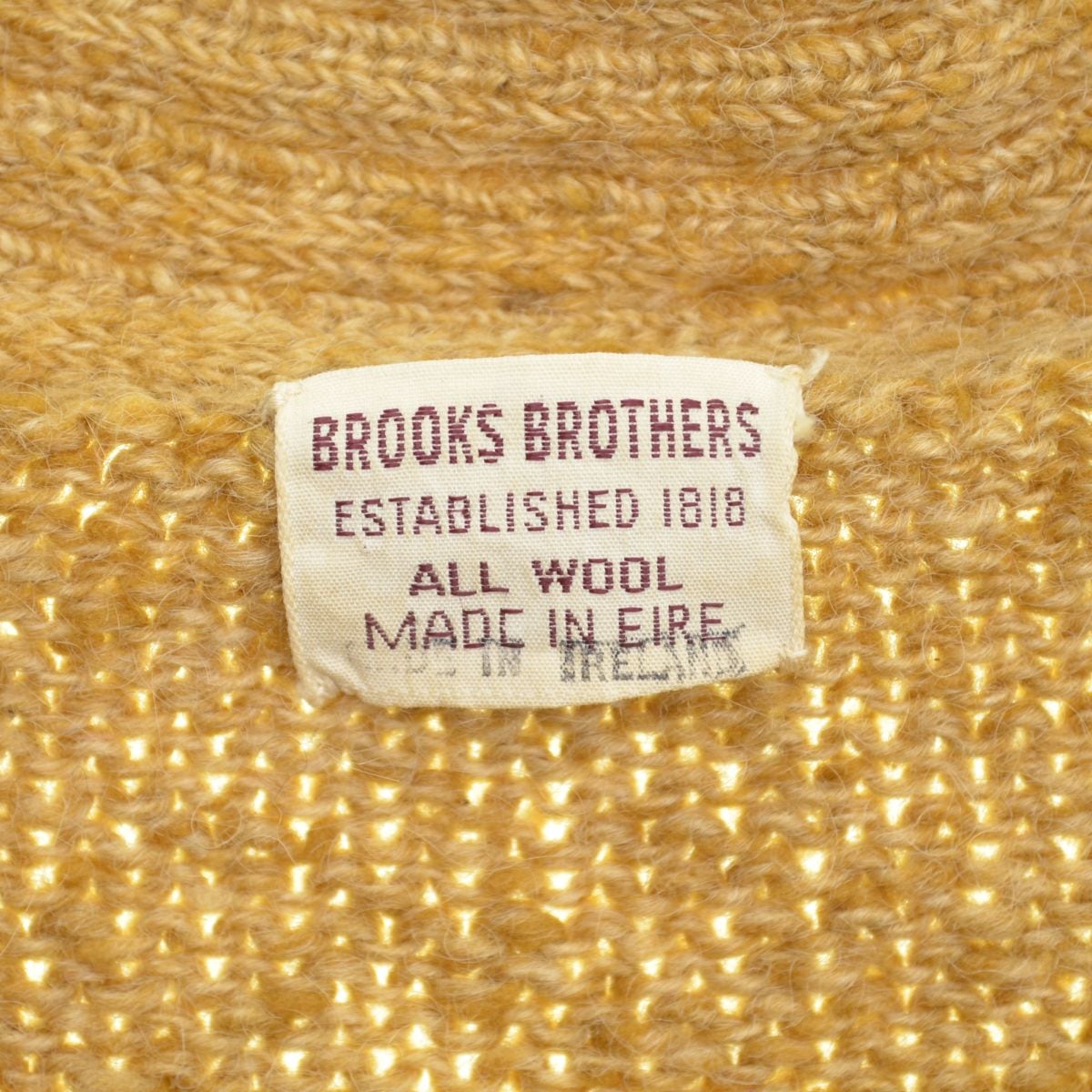 商品名:BROOKS BROTHERS / ブルックスブラザーズ 〜70s アイルランド製 胡桃ボタンウール長袖カーディガン 商品コード:G006208931 表記サイズ:- 実寸:総丈約74cm 身幅約57cm 裄丈(ラグランと同様の採寸方法)約85cm カラー:ベージュ系 コンディション:USED品となりますので、使用感があり、バックにリペア跡が見られます。 素材:ウール100% 付属品:-